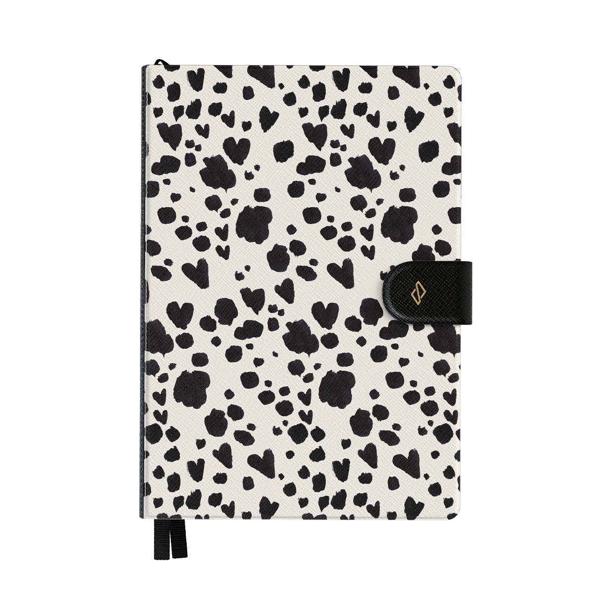 This design features: black and white dalmatian pattern.