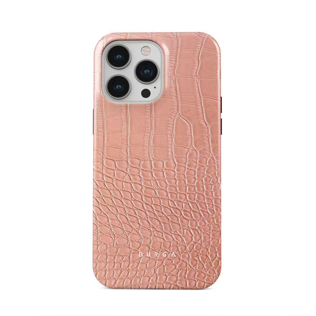 Our Pink Croco iPhone 13 Pro phone case features a classic crocodile design reimagined and showcased in a soft coral shade. The new take on the dangerous animal print will add a touch of softness to your style while simultaneously offering heavy-duty protection to your device.