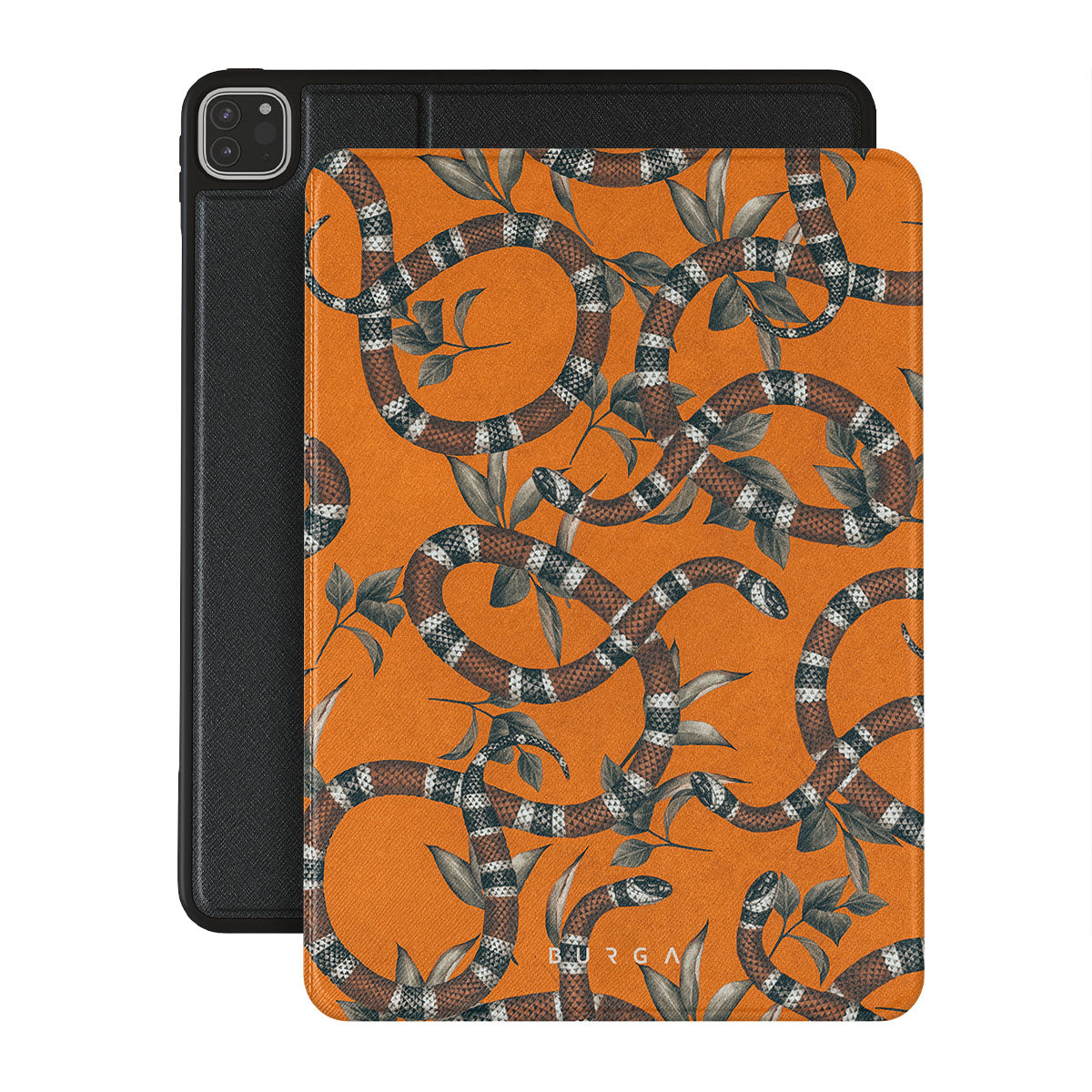 Take a bit of fierceness with yourself with our bright orange and dangerously beautiful iPad Pro 12.9 (6th/5th Gen) folio case with a snake pattern. This case is real eye candy for fashion lovers and just as needed for those who strive to keep their iPads protected.