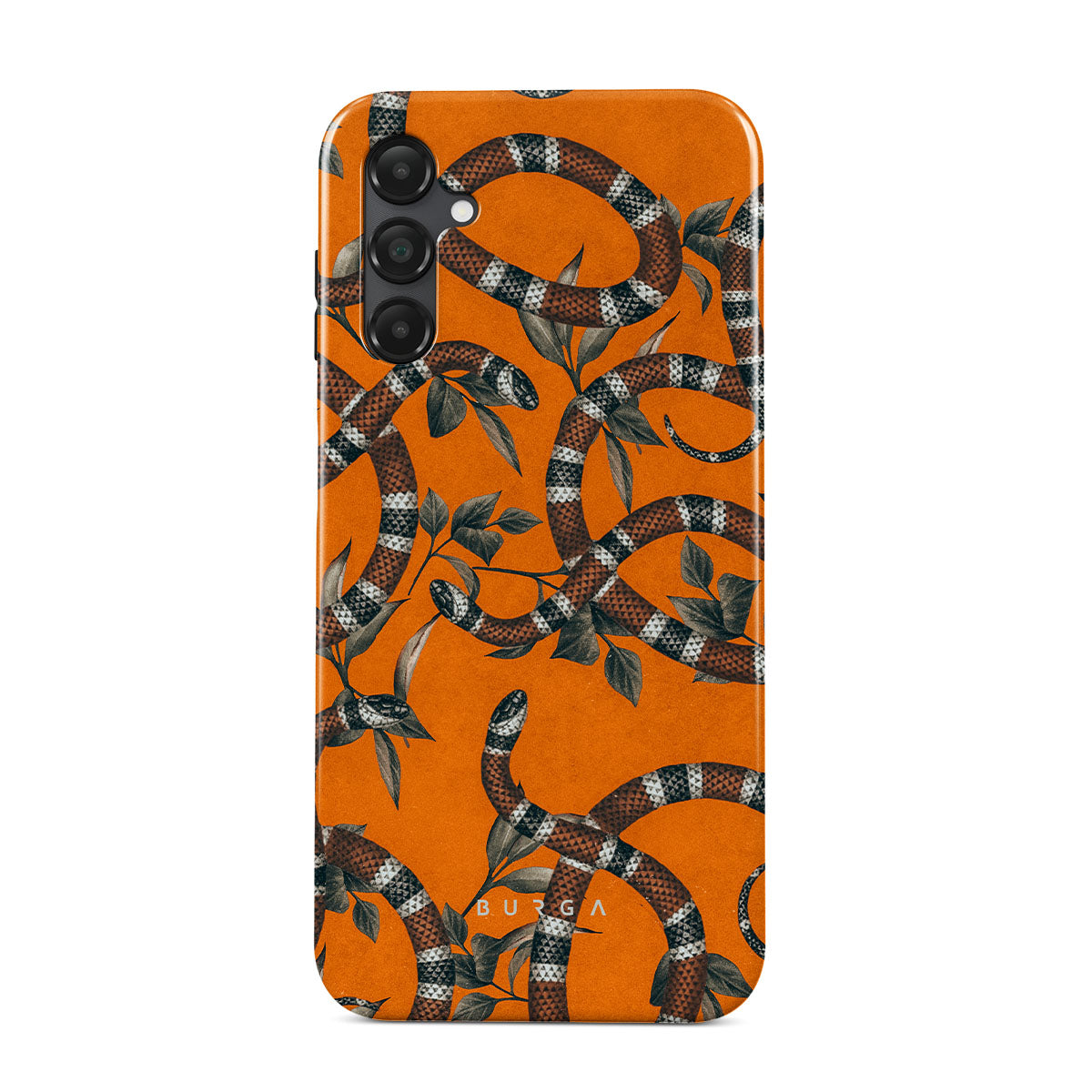 Take a bit of fierceness with yourself with our bright orange and dangerously beautiful Samsung Galaxy A25 phone case with a snake pattern. This case is real eye candy for fashion lovers and just as needed for those who strive to keep their phones protected.
