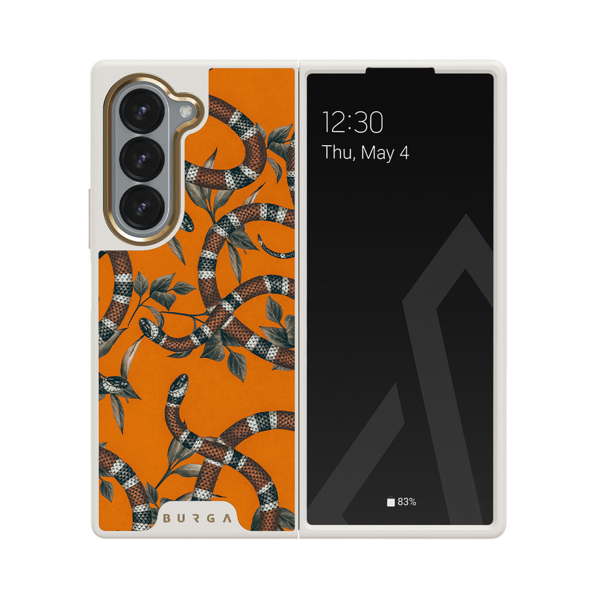 Take a bit of fierceness with yourself with our bright orange and dangerously beautiful Samsung Galaxy Z Fold 6 phone case with a snake pattern. This case is real eye candy for fashion lovers and just as needed for those who strive to keep their phones protected.