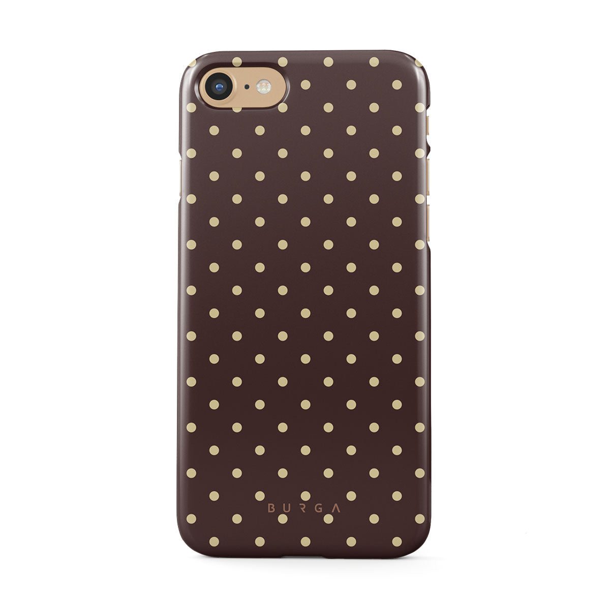 Playful yet polished, our Sorry Busy iPhone 7 / iPhone 8 phone case design features a warm brown background sprinkled with delicate beige polka dots, blending charm with a professional edge. It's for those who keep it stylish, even when fully booked and thriving.