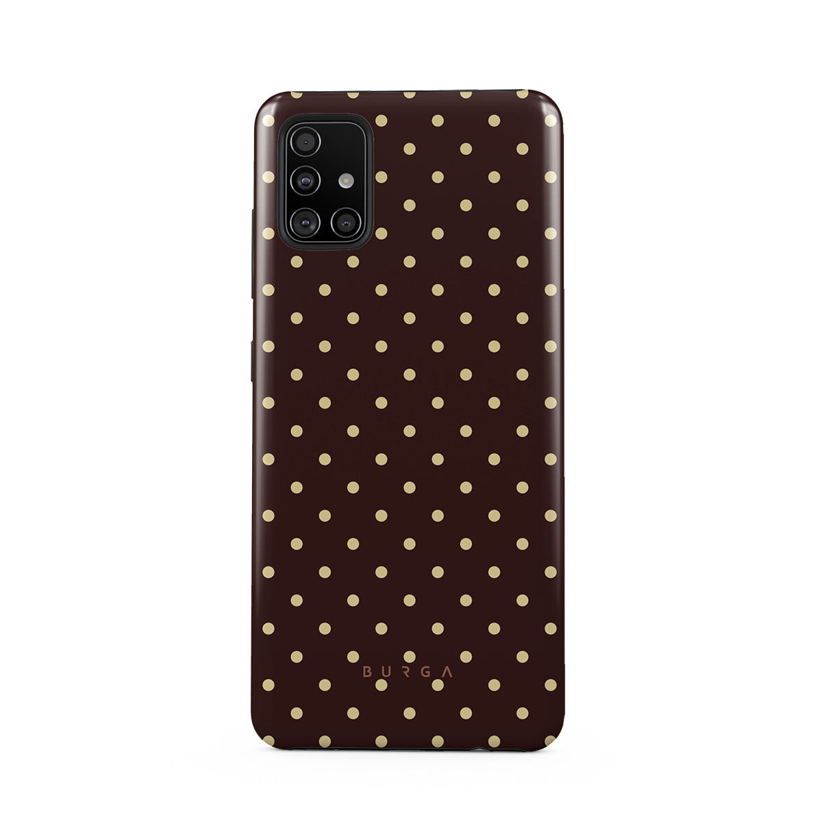 Playful yet polished, our Sorry Busy Samsung Galaxy A51 4G phone case design features a warm brown background sprinkled with delicate beige polka dots, blending charm with a professional edge. It's for those who keep it stylish, even when fully booked and thriving.