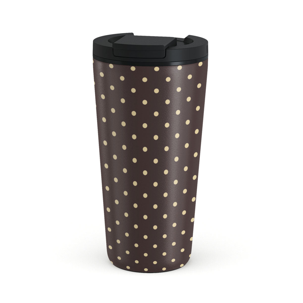 This design features: brown background, beige polka dots.