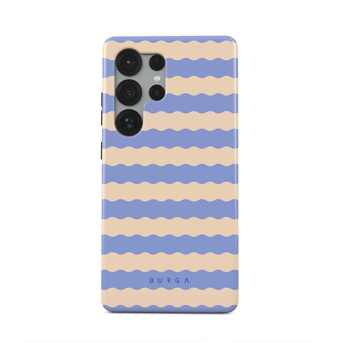 Dive into the cool, refreshing style of our Splash design–a dynamic Samsung Galaxy S25 Ultra phone case featuring playful, wavy stripes of serene ocean blue and soft sandy beige. Perfect for those who love to make a splash with their accessories.