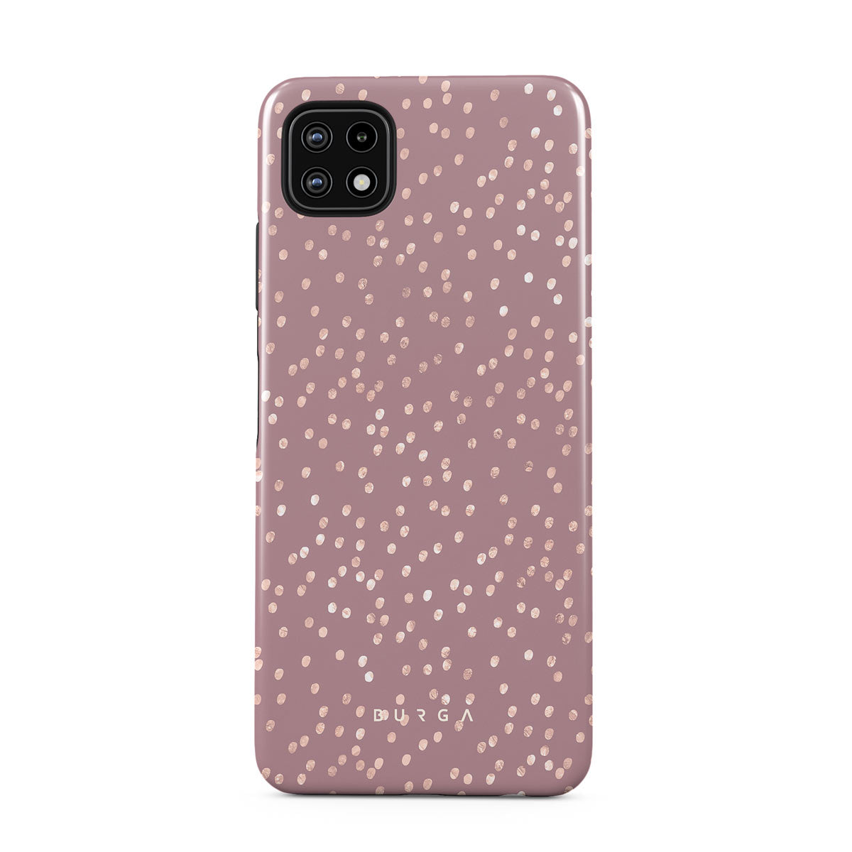 Trendy mauve color as a background for the gold-colored spots creates true beauty. Make your Samsung Galaxy A22 5G stand out with our protective and pretty Hot Cocoa phone case. The spotted pattern adds a touch of luxury to your phone, while the case's hard-shell nature offers much-needed protection.