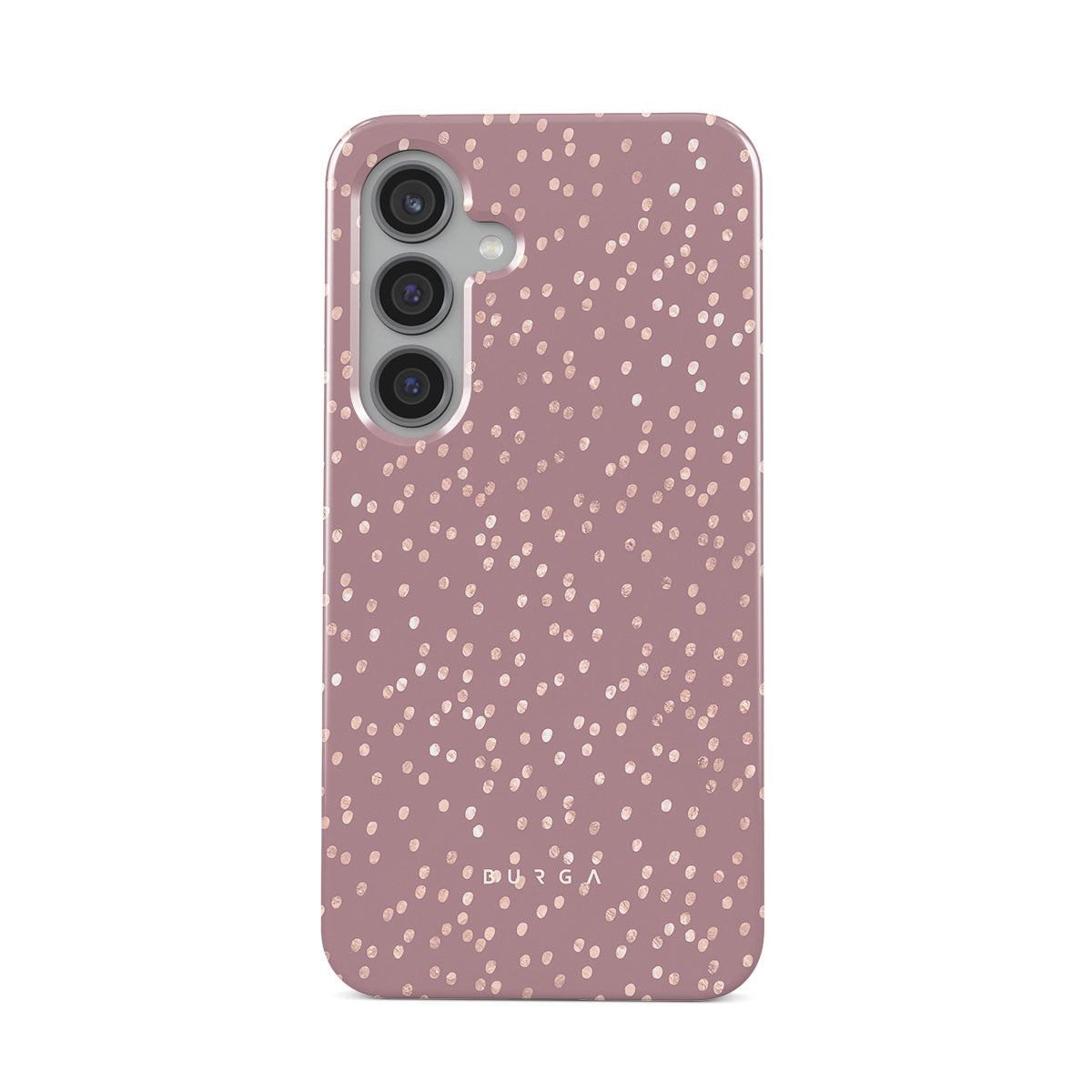Trendy mauve color as a background for the gold-colored spots creates true beauty. Make your Samsung Galaxy S24 Plus stand out with our protective and pretty Hot Cocoa phone case. The spotted pattern adds a touch of luxury to your phone, while the case's hard-shell nature offers much-needed protection.