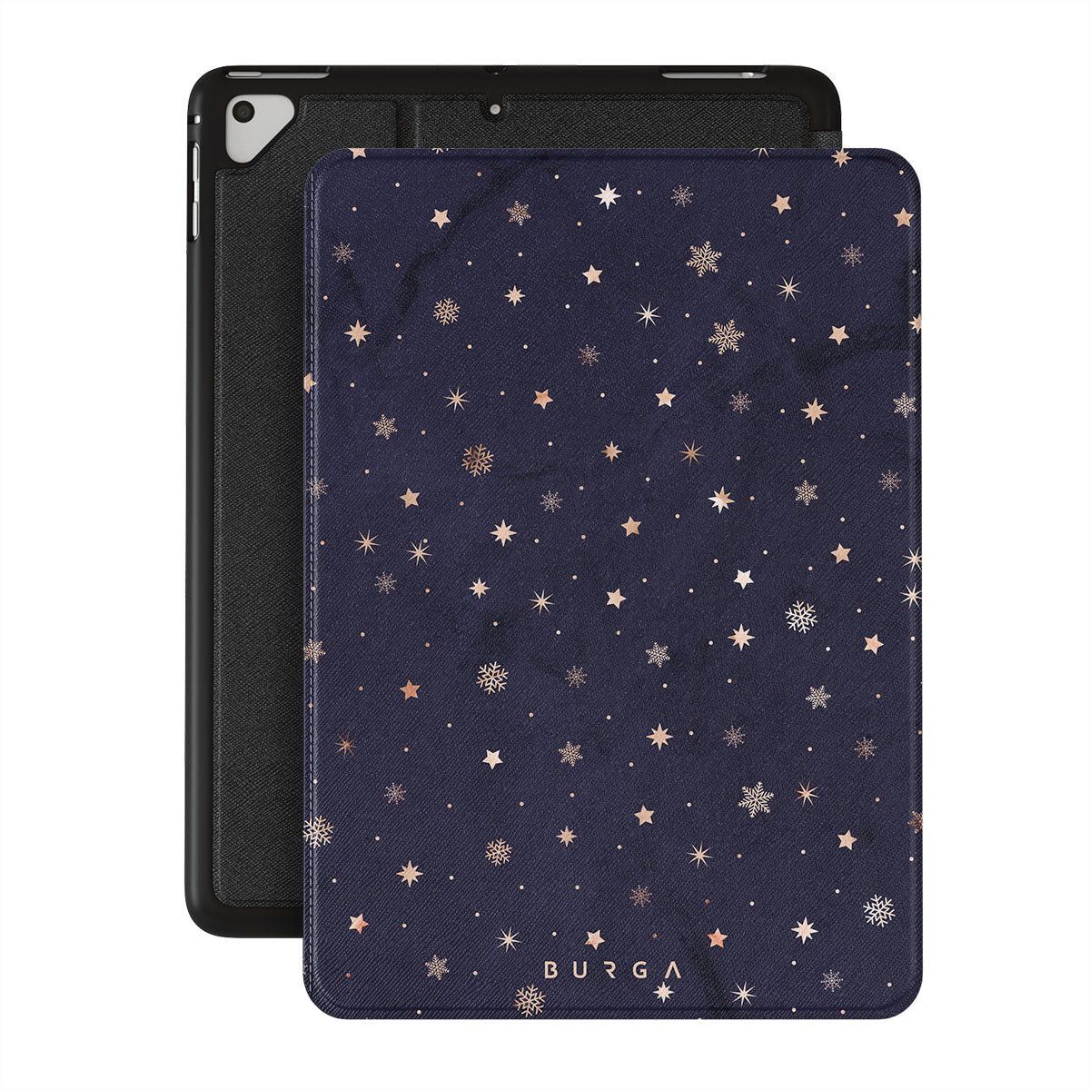 With a dreamy combination of dark blue and golden colors in the pretty star pattern found in our Midnight Kiss iPad 9.7 (6th/5th Gen) folio case, you can protect your iPad and add a magical feel to it just in one go.