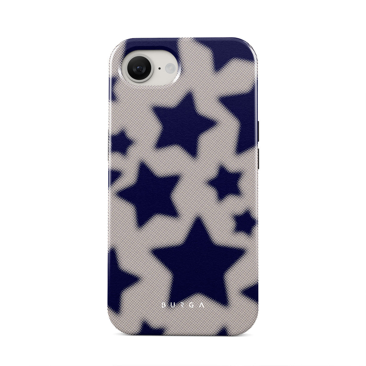 Rock a touch of '90s nostalgia with the Starstruck iPhone 16e phone case design. Its nude background is scattered with bold blue stars; each star hints at stories of hope and youthful dreams, blending simplicity with depth.
