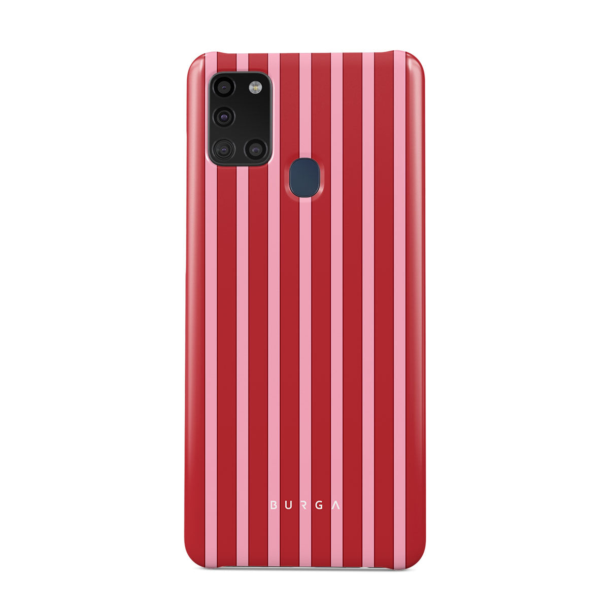 Stripes of red, like strawberry swirls on toast, this Samsung Galaxy A21s 4G phone case design brings the sweet memory of breakfasts that start with a spread of homemade love.