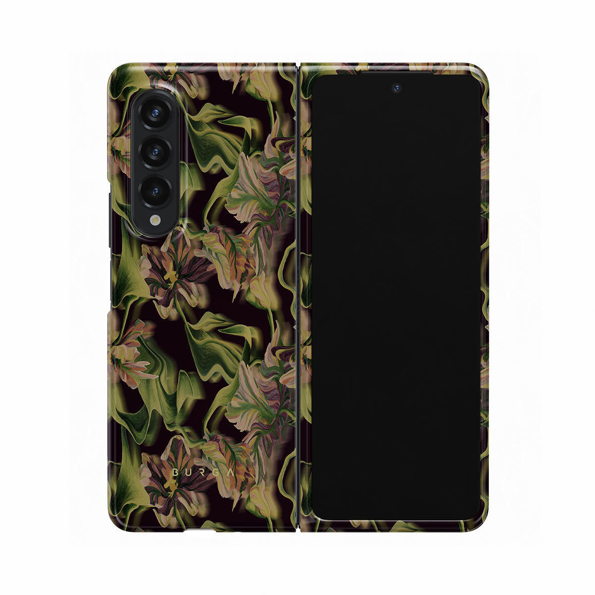 Let's wander into the world of humidity, fog, and deep green color. Our Subtropical Samsung Galaxy Z Fold 3 phone case will add that exotic touch to your life. The flower pattern is as clear as it seems to be melting away. The purple and orange shades in the flowers will add that subtle splash of color to your style without being too provocative.