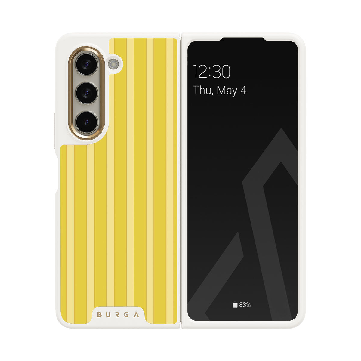 Bask in the glow of Sunbreak. This Samsung Galaxy Z Fold 5 phone case design features bold yellow stripes, reminiscent of beachside cabanas and sunny summer days. It’s a chic celebration of joy and simplicity.