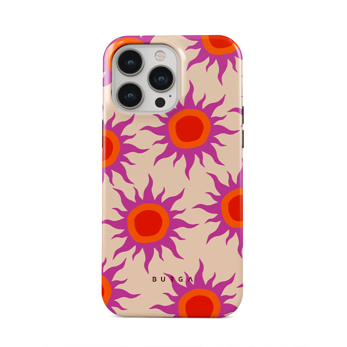 Discover the radiant serenity of the Sunset Glow design, a harmonious blend of soothing pastels and fiery suns. Vivacious viva magenta rays add a playful touch, perfectly balancing tranquility and dynamism. More than just a fashion accessory, this striking iPhone 13 Pro phone case mirrors your unique personality and zest for life.