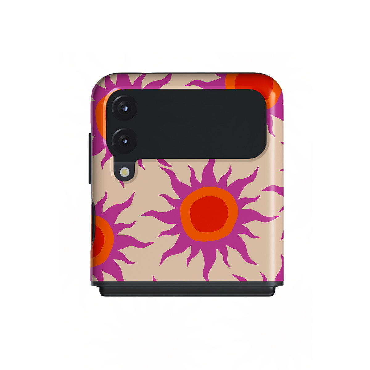 Discover the radiant serenity of the Sunset Glow design, a harmonious blend of soothing pastels and fiery suns. Vivacious viva magenta rays add a playful touch, perfectly balancing tranquility and dynamism. More than just a fashion accessory, this striking Samsung Galaxy Z Flip 3 phone case mirrors your unique personality and zest for life.