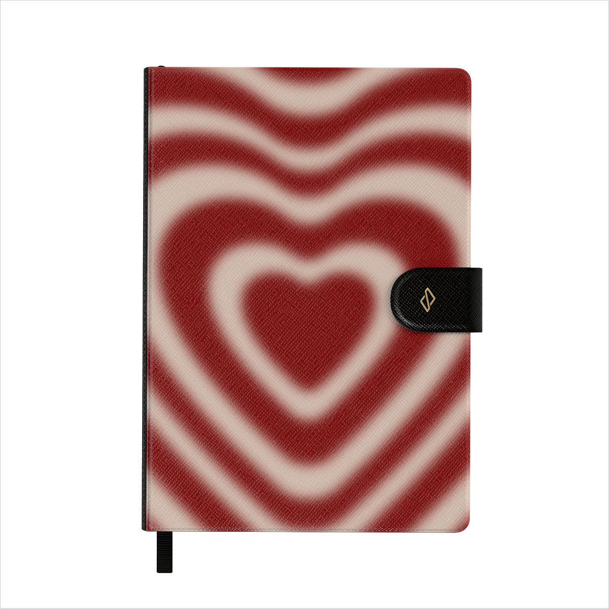 Features well-detailed BURGA patterns to a vegan faux leather front cover. Topped with an elegant black ribbon page marker.