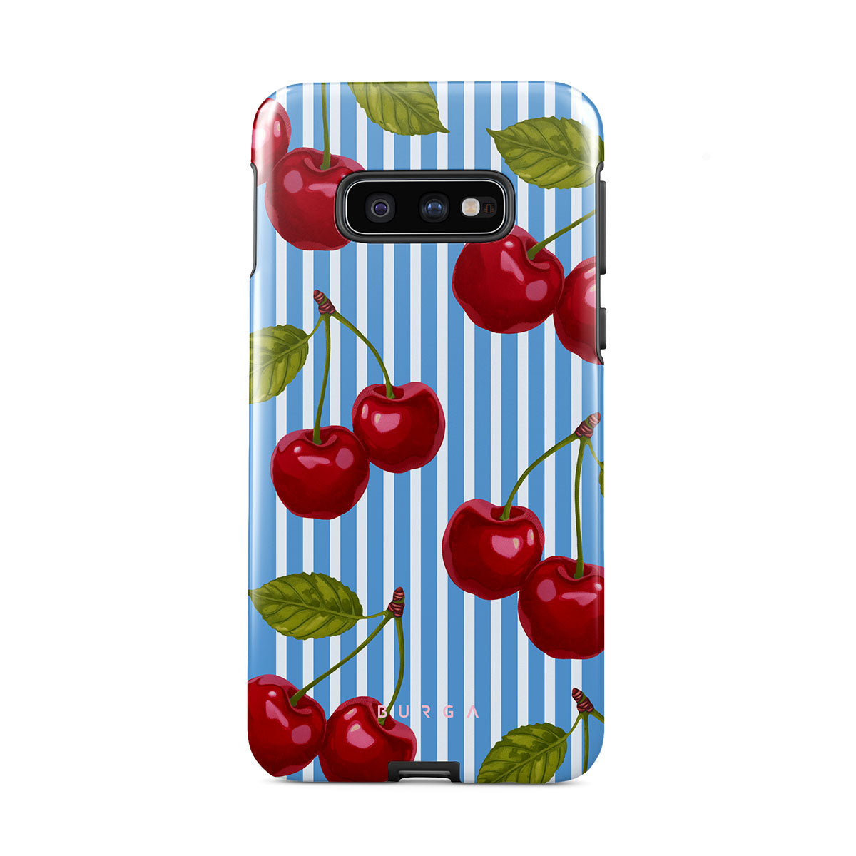 Cherries dangle like earrings from blue skies, a fun reminder of that first bite of summer, juicy and bursting with laughter. Meet our Sweet Moment Samsung Galaxy S10E phone case design.