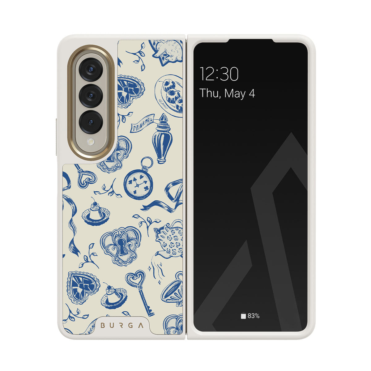 The Tea Party Samsung Galaxy Z Fold 4 phone case design is a porcelain puzzle—ribbons tangled, time warped, rules rewritten. Sit down, pour a cup, but don’t expect things to make sense. They never do.