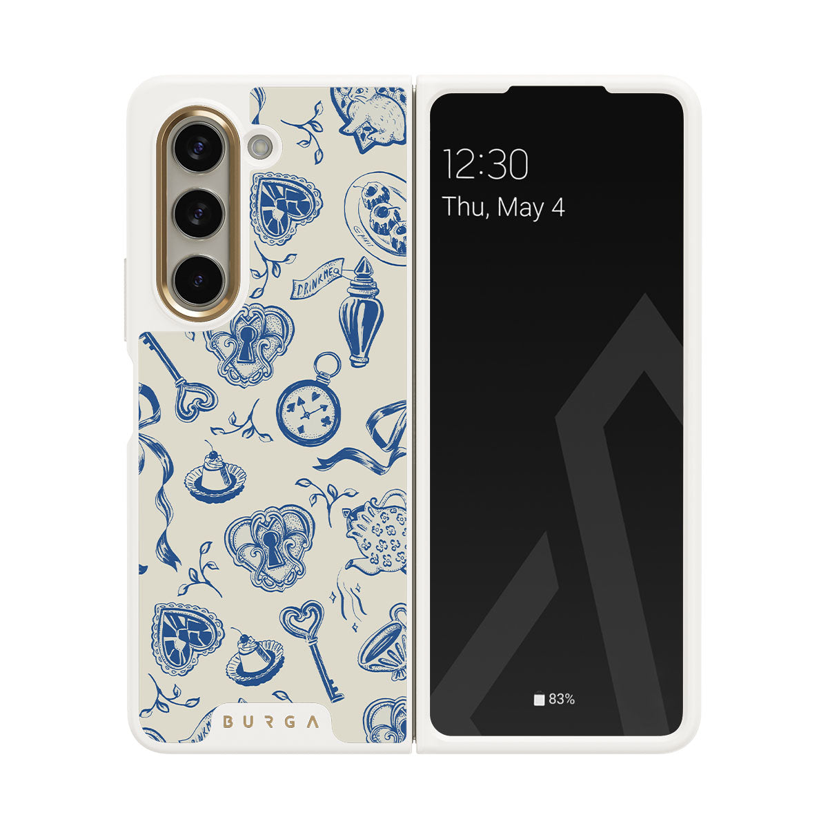 The Tea Party Samsung Galaxy Z Fold 5 phone case design is a porcelain puzzle—ribbons tangled, time warped, rules rewritten. Sit down, pour a cup, but don’t expect things to make sense. They never do.