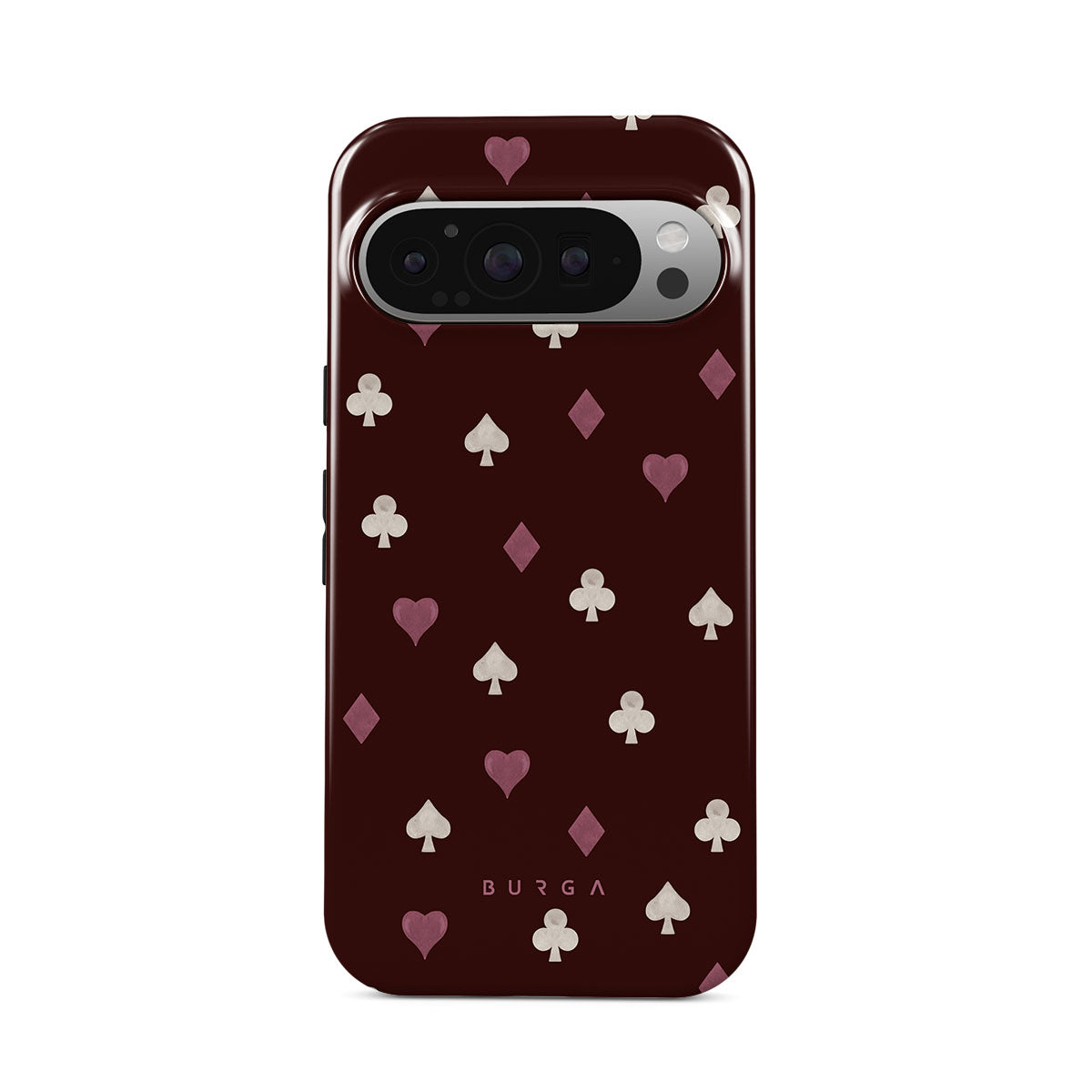 Nothing is as it appears. Hearts, clubs, diamonds, and spades—stacked in your favor or playing against you? This Google Pixel 9 Pro phone case design features a rich burgundy background and minimalist suits that make for a game where the rules are constantly shifting.