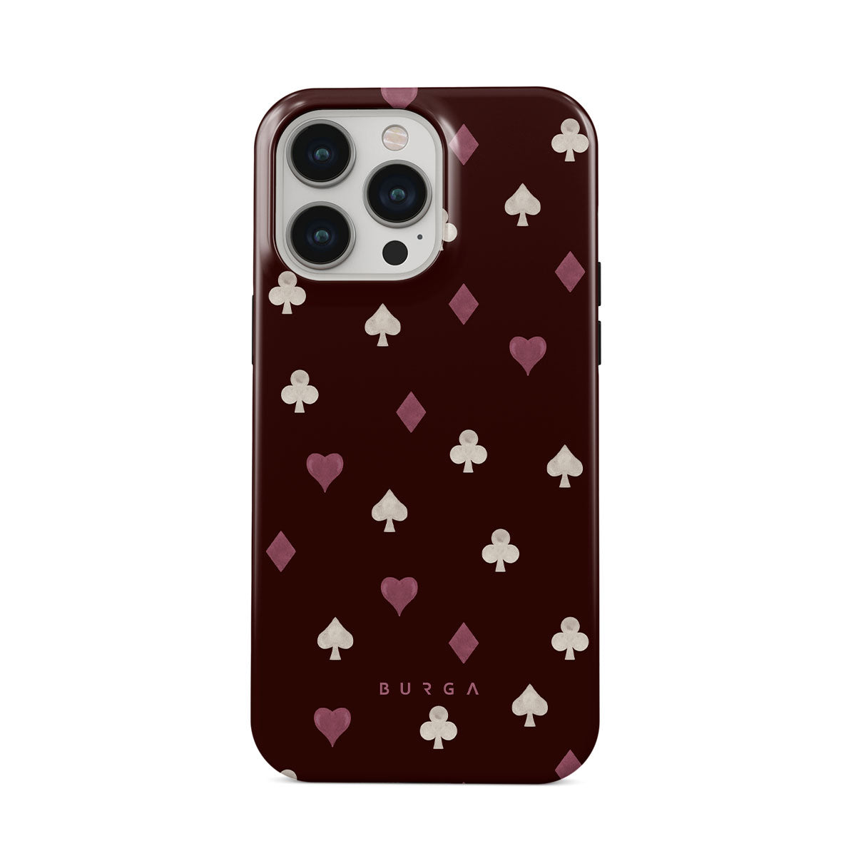 Nothing is as it appears. Hearts, clubs, diamonds, and spades—stacked in your favor or playing against you? This iPhone 13 Pro phone case design features a rich burgundy background and minimalist suits that make for a game where the rules are constantly shifting.