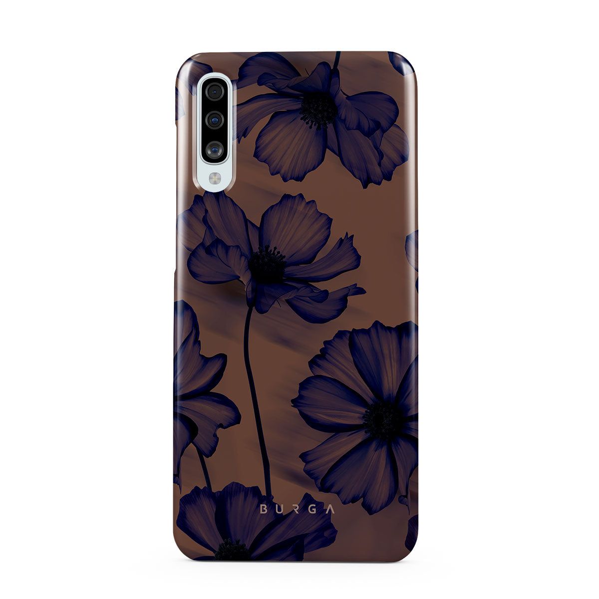 Discover our Velvet Night design. On a soft nude backdrop, blue poppies dance in the untamed rhythm of the wind. A blend of night's peace and daring energy, this Samsung Galaxy A50 phone case is perfect for those who dream big and seek adventure.