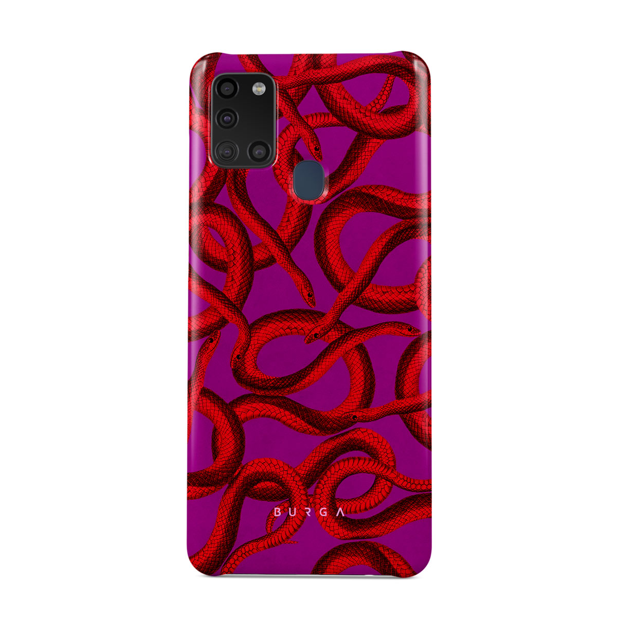 Watch Out Samsung Galaxy A21s 4G phone case design offers a fierce feel with a bright magenta colored background covered in red snakes pattern. Make a statement while protecting your phone, as this case is guaranteed to catch everyone's eye.