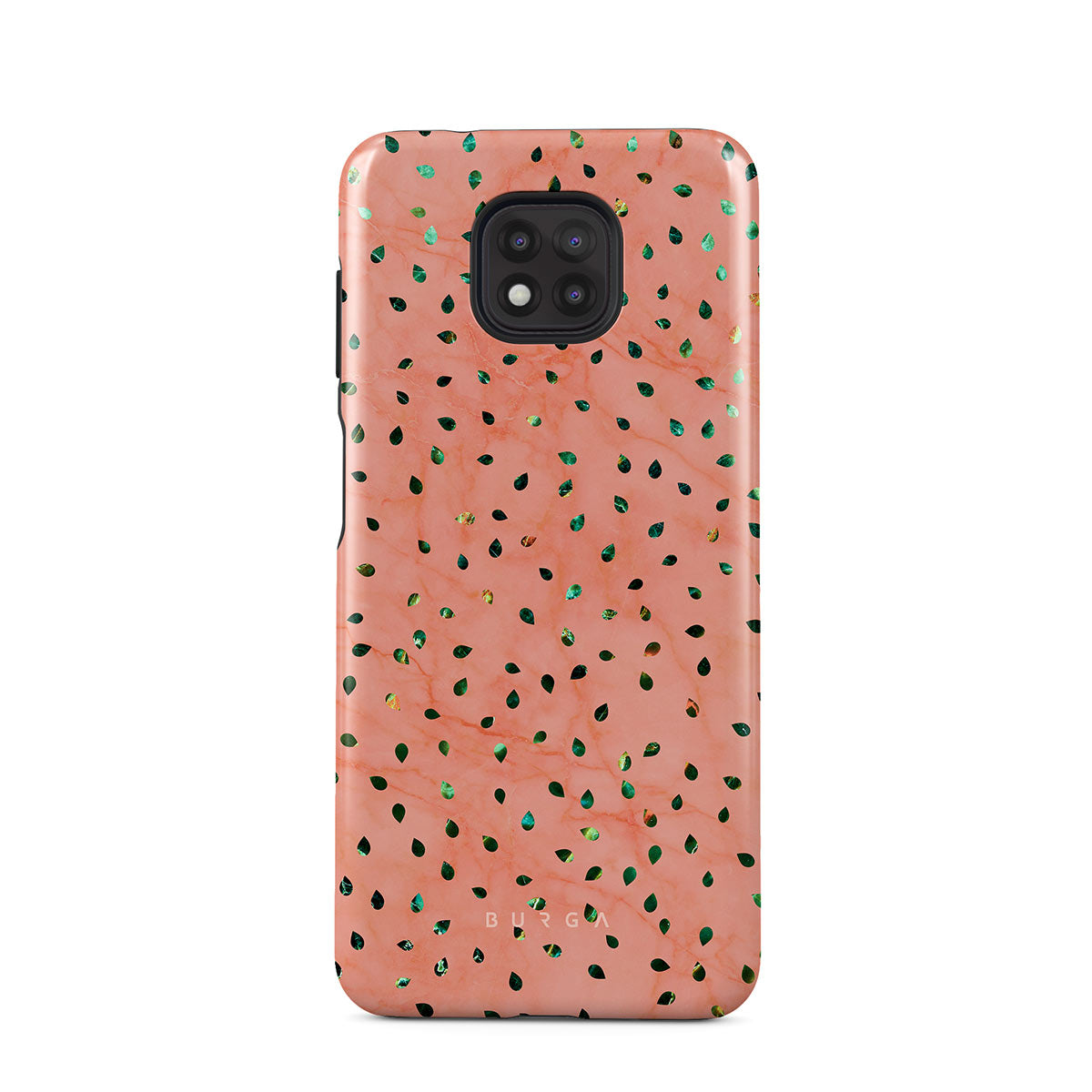 The Watermelon Shake Motorola Moto G Power 2021 phone case offers a playful take on design merging. The watermelon seed-like specks showcase striking tropical design fragments that add a splash of color to the fresh and breezy coral pink marble. This way, the funny protective phone cover becomes a perfect statement piece for your summer outfits.