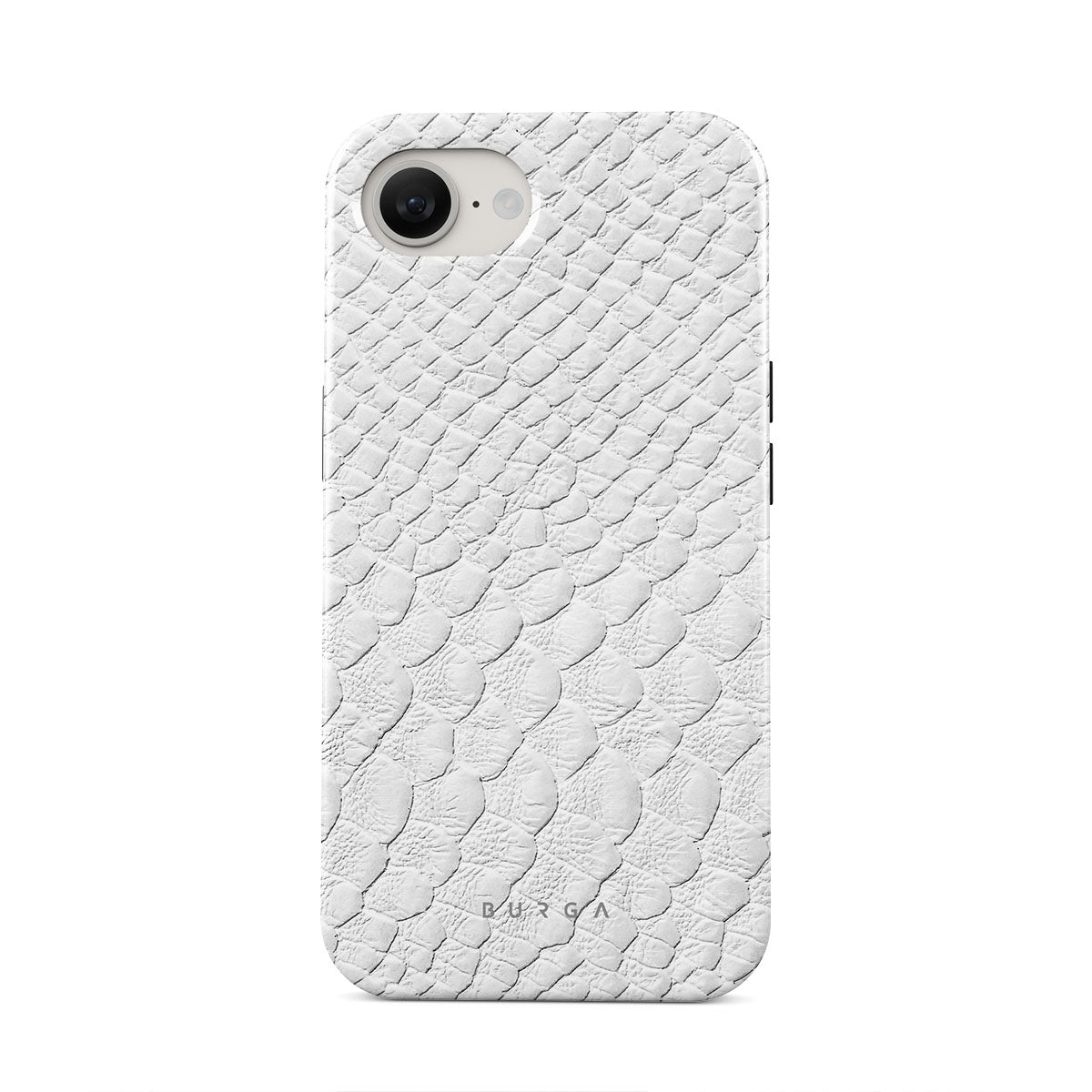 Glacial Desert iPhone 16e phone case features snakeskin design in glacial white color. The dangerous animal print will add confidence and a touch of luxury to your style while transforming your phone into a fashion accessory.