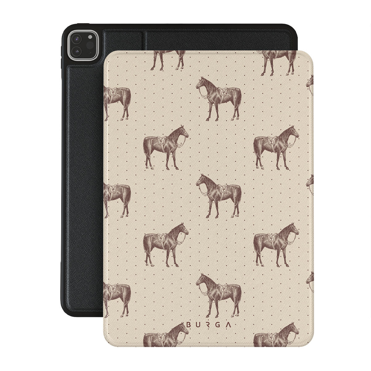 Life might feel like the Wild West sometimes, but your look can still be on point. With beautiful horses on a classic nude background, this iPad Pro 12.9 (6th/5th Gen) folio case design is the one for those who ride free and stylish.